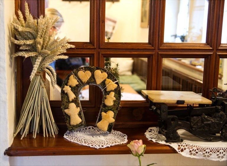 Motiv malovaného obloučkového soklu byl převzat ze staveb z jižní Moravy, z oblasti Hluku, kde zmiňovaný Josef Zicháček, majitel mlýna a pozdější starosta obce Brusné, působil jako krajánek – mlynářský tovaryš. Černobílá šachovnice ve výklenku na uličním průčelí symbolizuje havířskou minulost naddůlního z Moravské Ostravy Františka Kubečky, zetě Josefa Zicháčka.